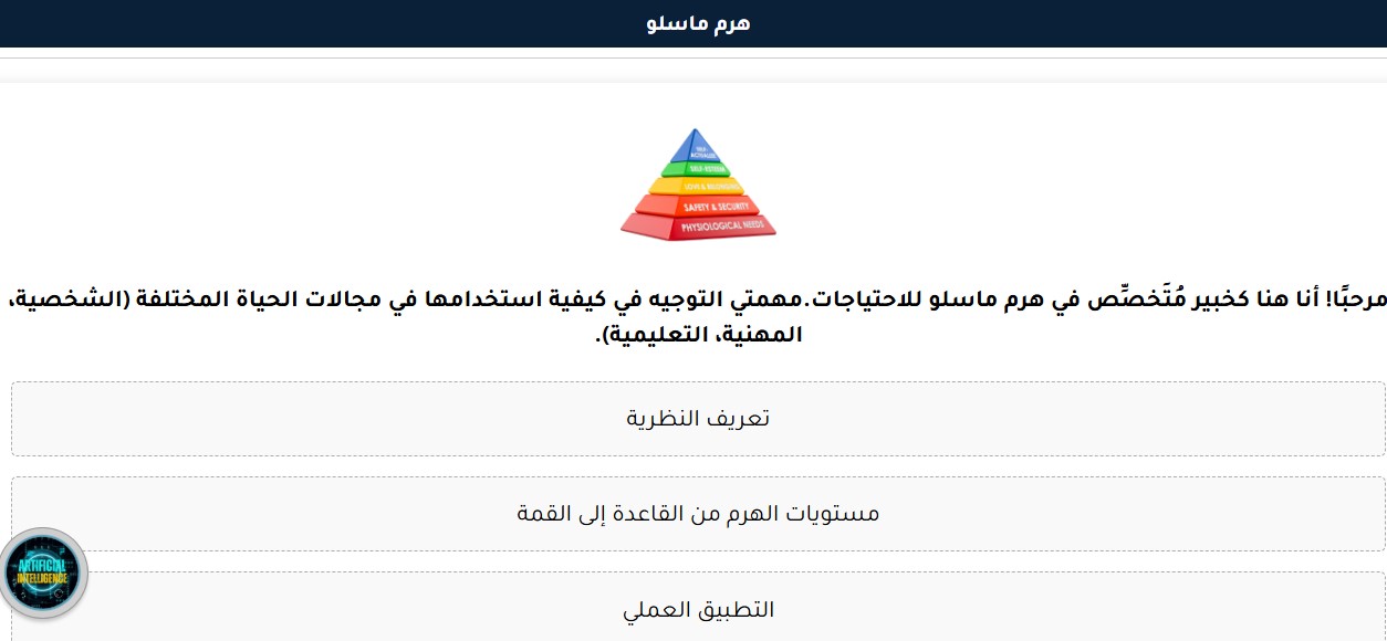 ما يميز تجربة استخدام هذا المساعد هو الإحساس بالتقدم المنطقي. يشعر المستخدم أنه لا يحصل على معلومات فحسب، بل يبني فهما. سواء كنت تعمل على مشروع بحثي، تخطط لاستراتيجية عمل، أو حتى تحاول تنظيم أولوياتك الشخصية، فإن هرم ماسلو يعيدك دائما إلى الأساسيات قبل الانتقال إلى التعقيدات. هذا يجعل منه أكثر من أداة مساعدة؛ إنه إطار تفكير.