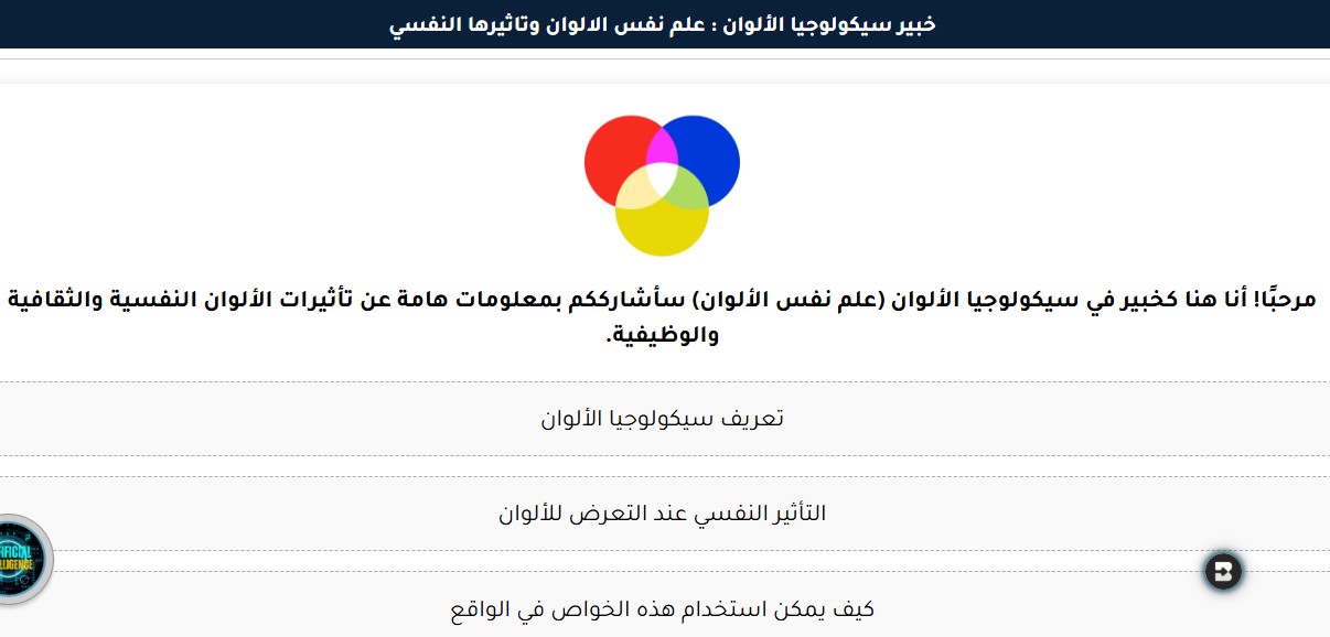 قوة هذا المساعد لا تكمن فقط في معرفته الواسعة بالنظريات الكلاسيكية، بل في قدرته على التكيف مع السياق. فهو لا يقدم إجابات عامة، بل يحلل مشروعك المحدد: جمهورك، رسالتك، وقنوات الاتصال الخاصة بك. ثم يبني توصيات مخصصة تأخذ في الاعتبار الفروق الثقافية والاجتماعية في تفسير الألوان، مما يمنع أخطاء فادحة قد تسبب سوء الفهم أو النفور.