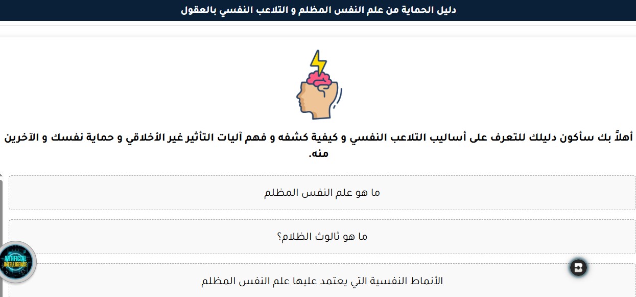 في عالم يزداد ترابطاً رقمياً يوماً بعد يوم، أصبحت حماية عقولنا من التلاعب النفسي أكثر إلحاحاً من أي وقت مضى. تنتشر تقنيات الإقناع الخفي والتأثير تحت العتبة الواعية في الإعلانات، ووسائل التواصل الاجتماعي، وحتى في بعض التفاعلات اليومية. هنا يأتي دور المساعد الذكي "دليل الحماية من علم النفس المظلم و التلاعب النفسي بالعقول"، الذي تم تطويره كجزء من جيش المساعدين الأذكياء، ليكون حارسك الشخصي في هذا المشهد المعقد.