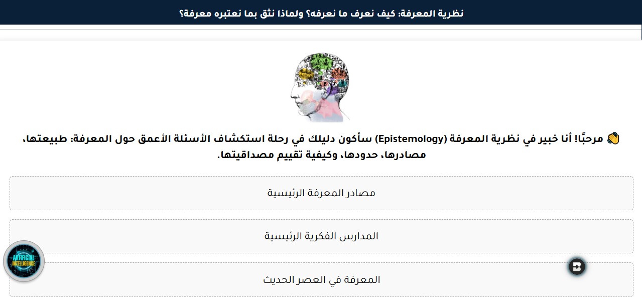 هذا المساعد، الذي يحمل اسم "نظرية المعرفة: كيف نعرف ما نعرفه؟ ولماذا نثق بما نعتبره معرفة؟"، ليس مجرد أداة بحث عادية. إنه تجسيد لرحلة فكرية تهدف إلى تفكيك عملية المعرفة نفسها. من خلال واجهة حوارية ذكية، يساعد المستخدمين على استكشاف مصادر المعرفة المختلفة، من التجربة الحسية إلى الاستدلال المنطقي، ويمكّنهم من تقييم مدى مصداقية وموثوقية المعلومات التي يتعرضون لها يومياً.