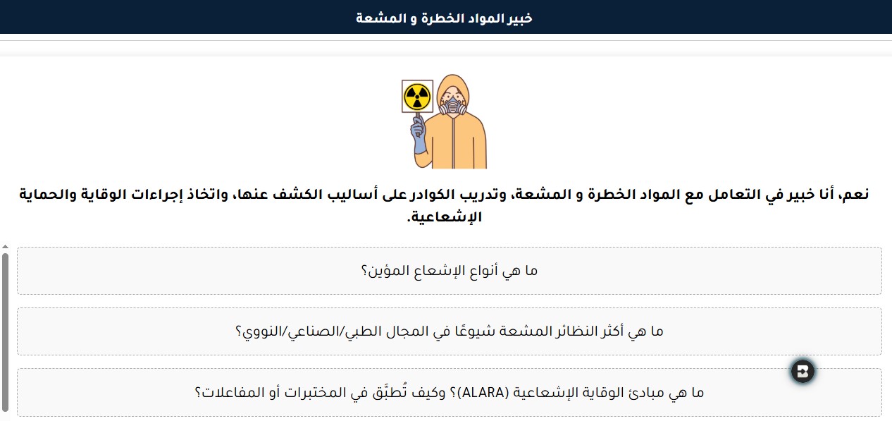 في مصانعنا ومستشفياتنا ومختبراتنا، وحتى في منتجات الحياة اليومية، تكمن مواد تحمل في طياتها مخاطر جسيمة تتطلب فهماً دقيقاً وتعاملاً حذراً. هنا يظهر دور الحارس الرقمي المتخصص، مساعد "خبير المواد الخطرة و المشعة"، وهو عضو متميز في جيش المساعدين الأذكياء، ليكون مرشدك الآمن إلى عالم يتطلب الدقة والسلامة فوق كل شيء.