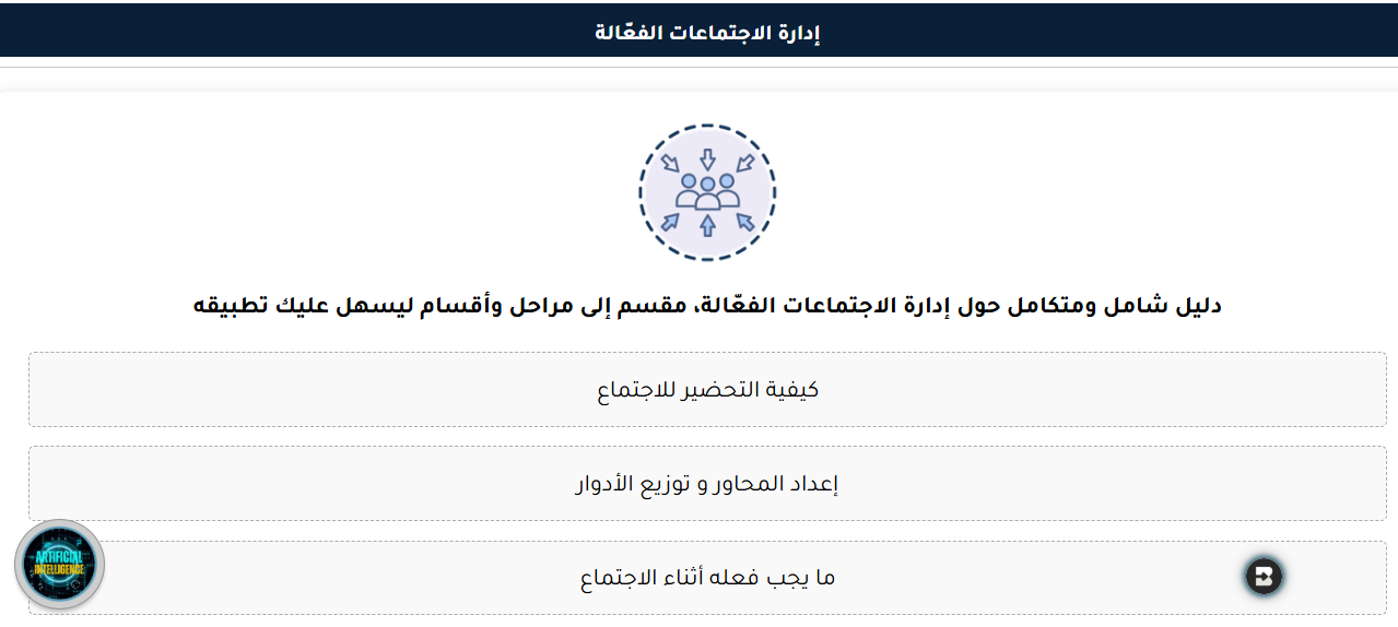 في عالم الأعمال المتسارع، تتحول العديد من الاجتماعات إلى كابوس من الإطالة وعدم الوضوح وغياب النتائج الملموسة. كم مرة جلست في اجتماع طويل شعرت في نهايته بأنه كان مجرد حديث عابر دون قرارات أو خطوات عملية؟ هنا يأتي دور المساعد الذكي المتخصص "إدارة الاجتماعات الفعّالة"، أحد أبرز أعضاء جيش المساعدين الأذكياء، ليقلب هذه المعادلة رأساً على عقب.