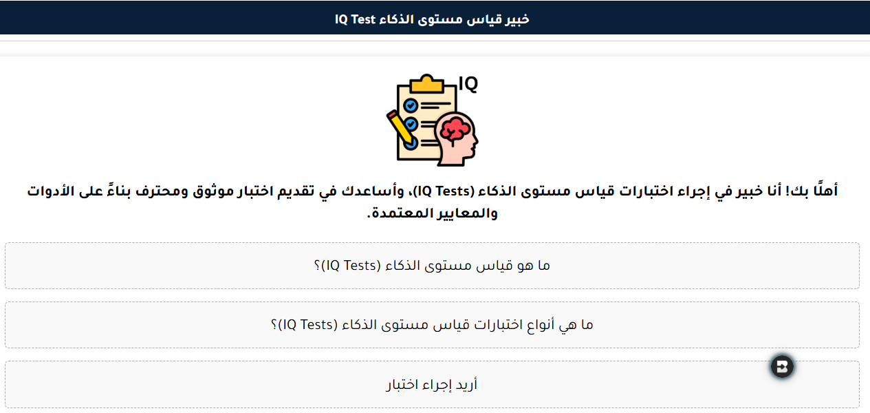 ما هو الذكاء حقاً؟ وكيف يمكن قياسه؟ أسئلة حيرت العلماء لعقود، وأصبحت اليوم في متناول يدك مع مساعد متخصص. يقدم منتدى الذكاء الاصطناعي مساعد "خبير قياس مستوى الذكاء IQ Test"، وهو عضو متميز في جيش المساعدين الأذكياء، ليكون دليلك الشخصي في عالم القياس النفسي والمعرفي. هذا المساعد لا يقدم اختبارات ذكاء تقليدية فحسب، بل يشرح فلسفتها ويحلل مكوناتها ويساعدك على فهم نتائجك في سياقها الصحيح.