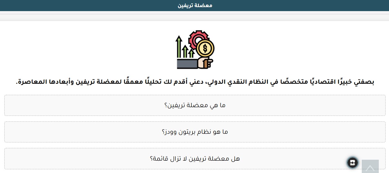 تم تطوير هذا المساعد الفريد كجزء من الجهود المستمرة التي يبذلها مجتمع منتدى الذكاء الاصطناعي لخلق أدوات تعليمية وتحليلية متقدمة. يقدم المساعد شرحاً مفصلاً ومتدرجاً للمعضلة التي صاغها الاقتصادي روبرت تريفين في الستينيات، والتي تشير إلى الاستحالة النظرية لجعل العملة الوطنية عملة احتياط عالمية في نفس الوقت مع الحفاظ على استقرار مالي داخلي. إنه يجعل هذا المفهوم المجرد ملموساً من خلال أمثلة تاريخية وبيانات تحليلية.